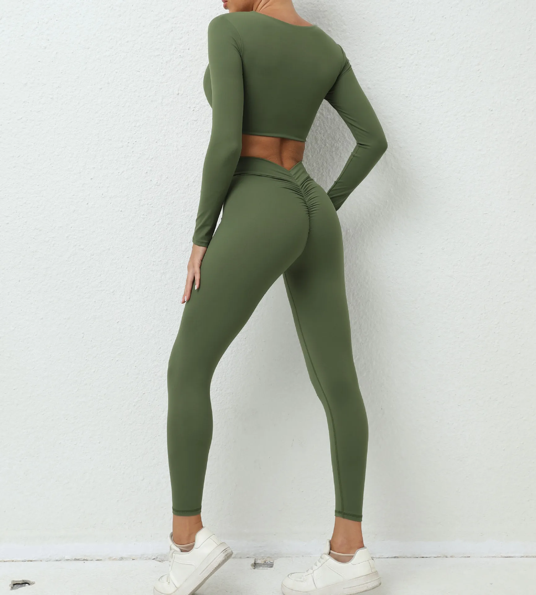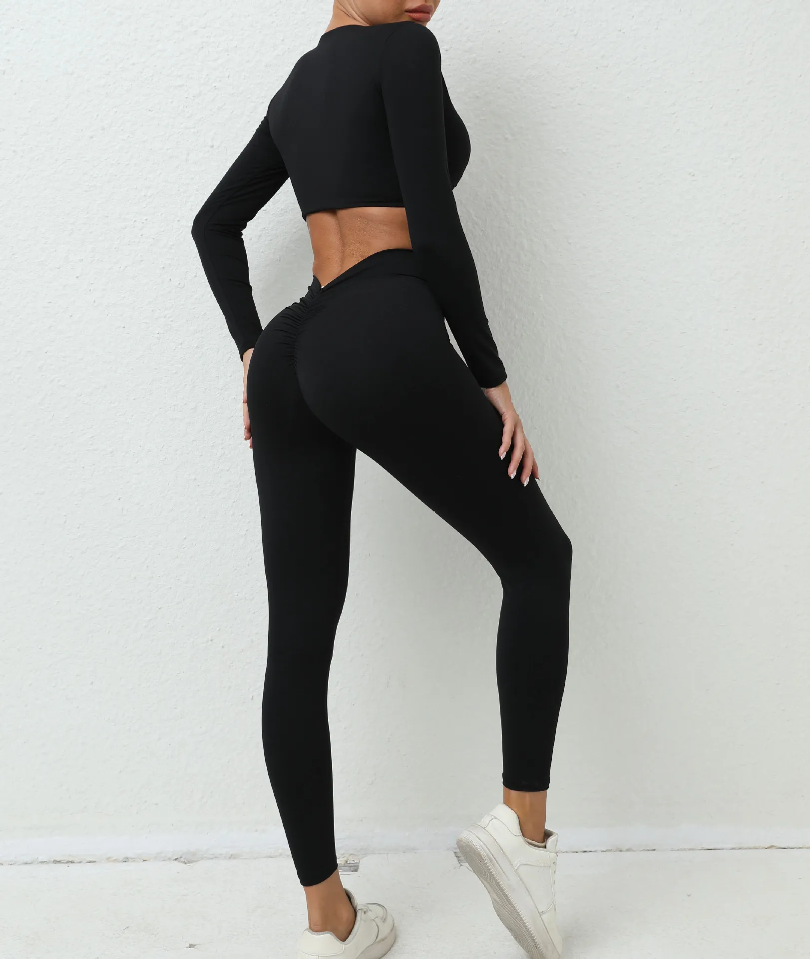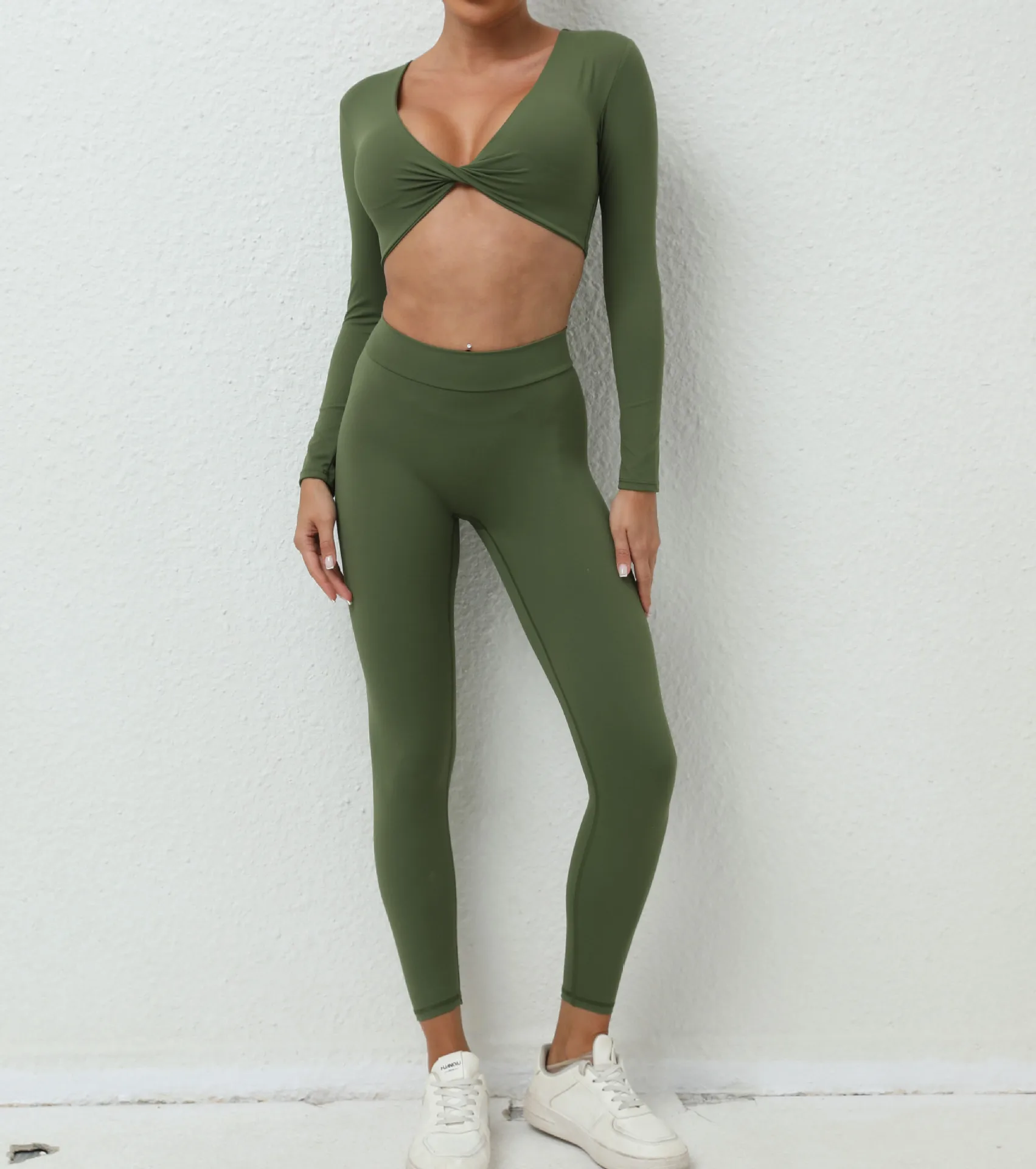 Unleash Your Power: Elevate Your Workout with Our Twisted Pattern Long Sleeve Crop Top and Full-Length Leggings Set!